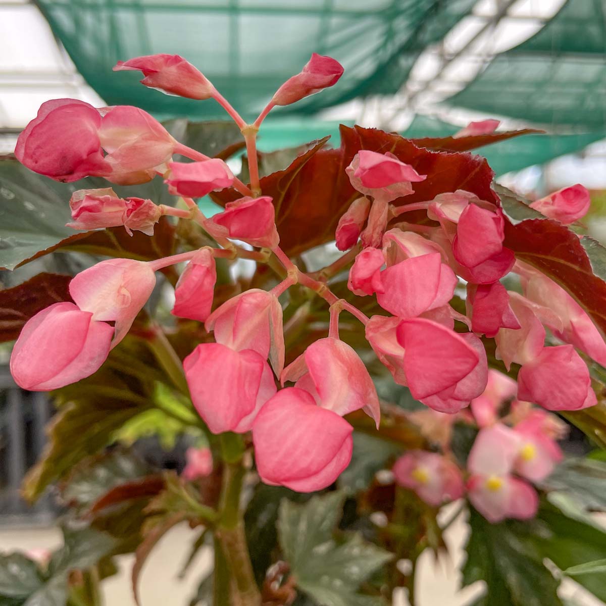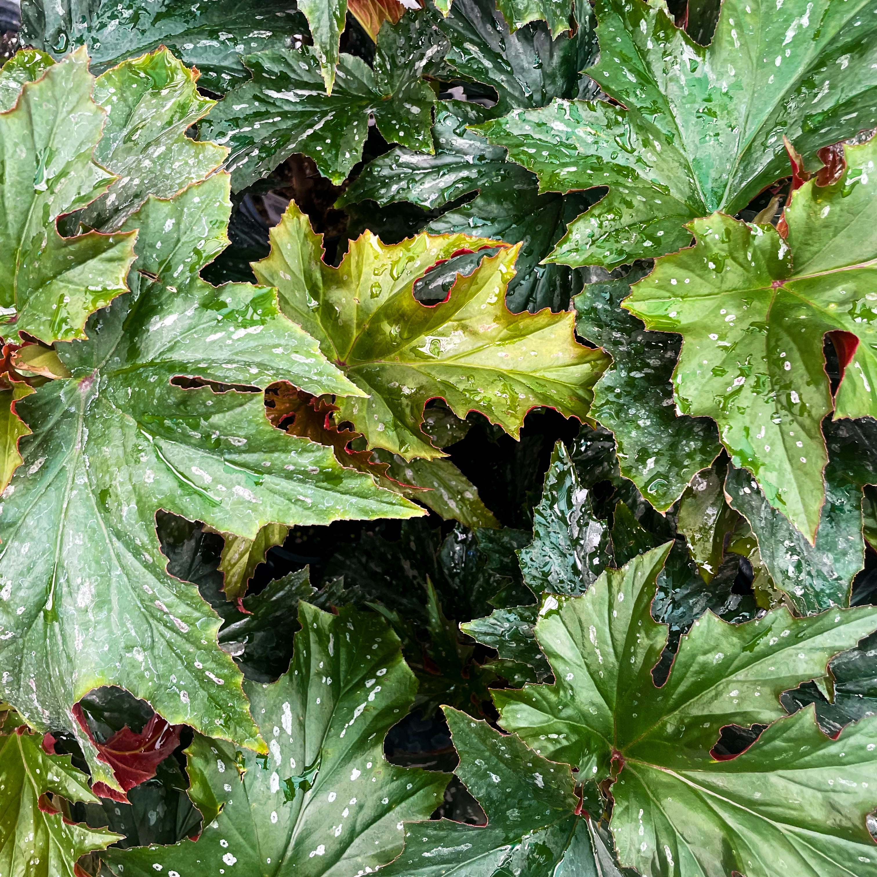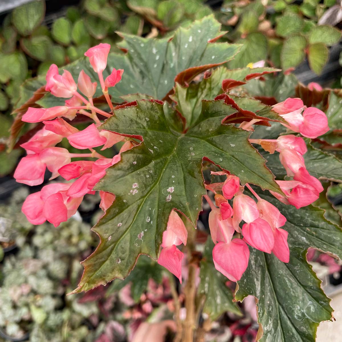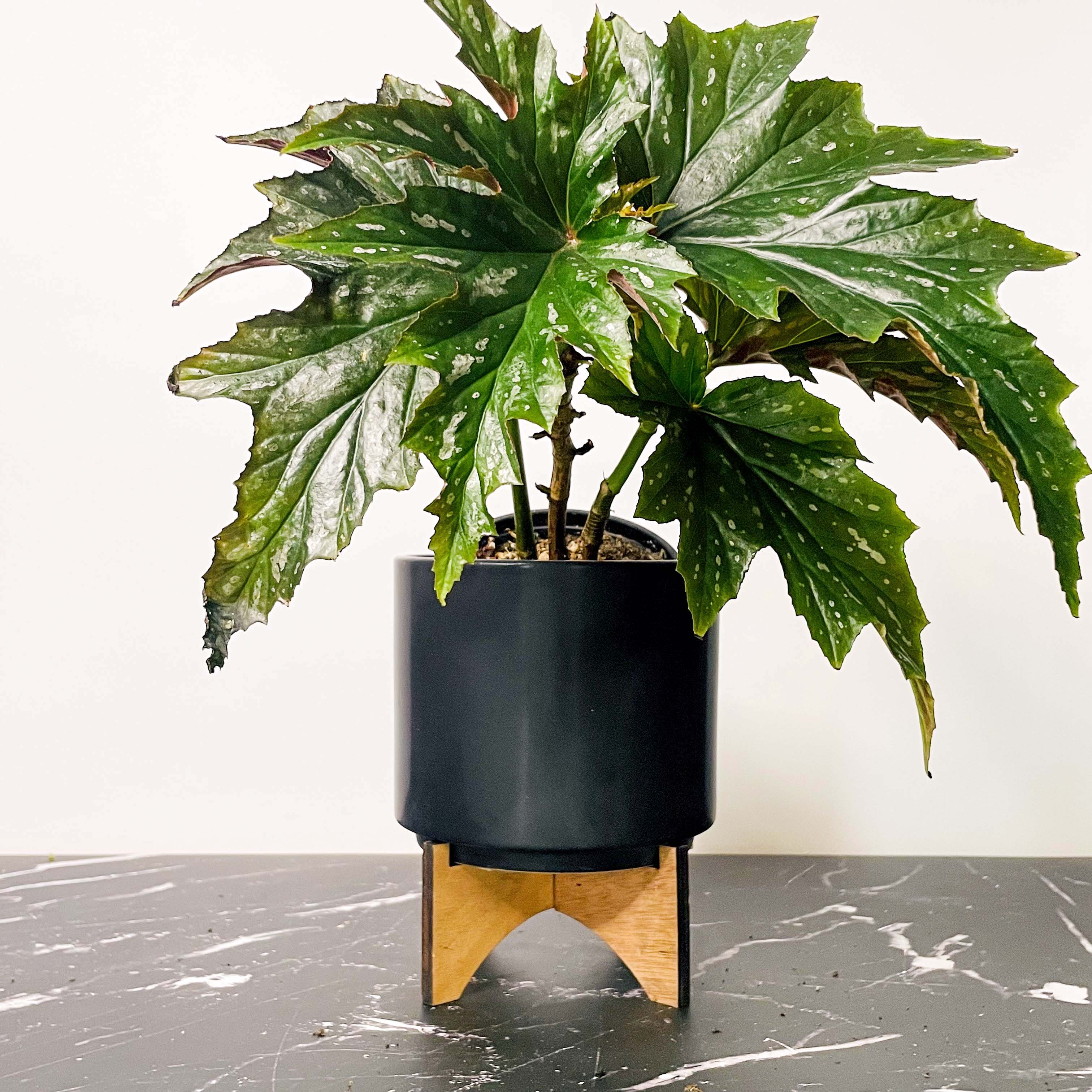 Thriving in bright, indirect light, Begonia 'Sophia' requires well-draining soil and prefers to be watered when the top inch of soil feels dry. It’s not only a visual treat but also blooms with delicate pink flowers, adding a touch of soft color to its dramatic leaf display. 'Sophia' is perfect for those looking to add a sophisticated flair to their home or office space.