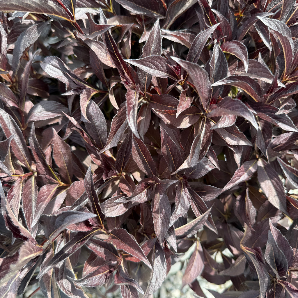 Spilled Wine Weigela shares the fabulous deep purple foliage and bright pink flowers of the classic Wine & Roses weigela but in a smaller size. This useful plant grows wider than tall, making it the perfect choice for edging beds or walkways and for incorporating under windows in your landscaping. Like all weigela, it is deer resistant and very easy to care for.