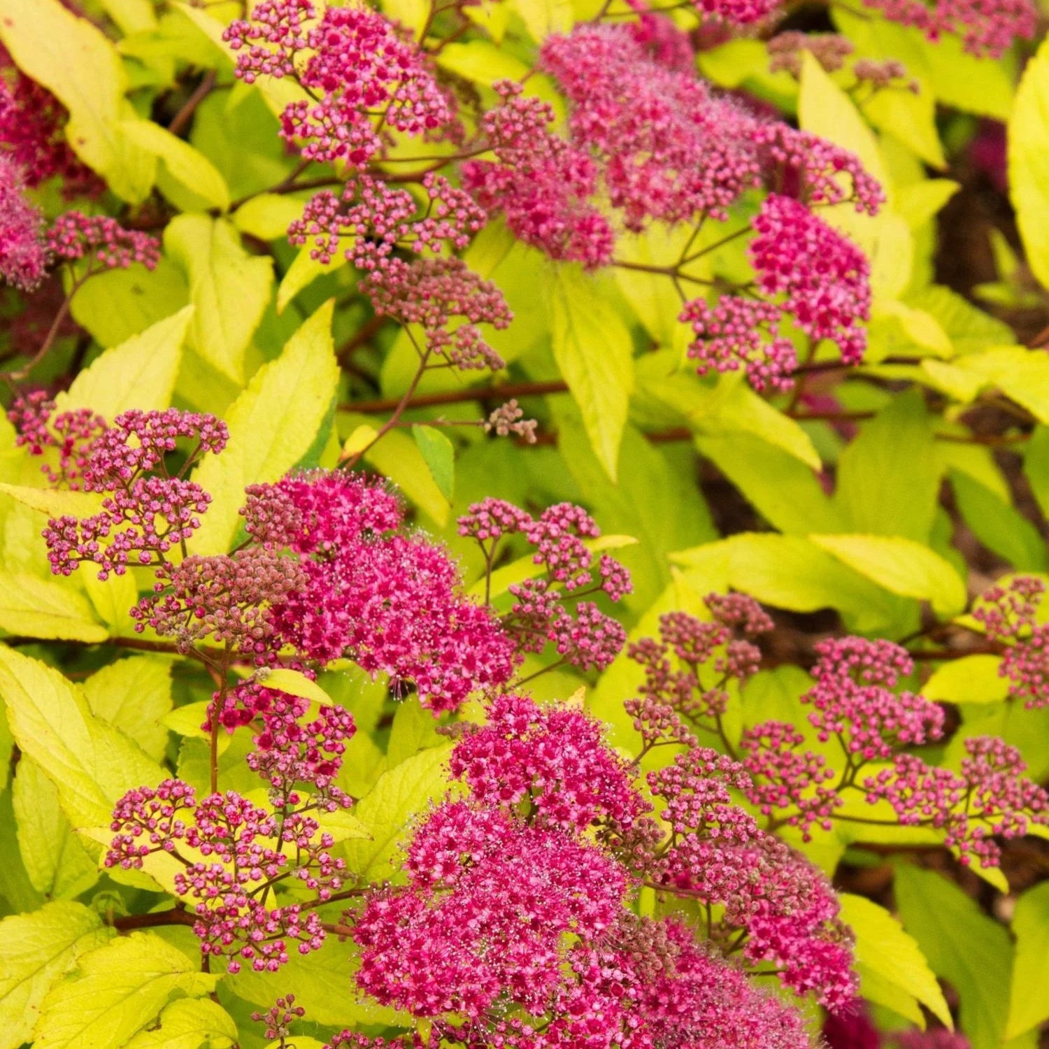 A dense, upright mounded shrub with attractive bronze-tinged new growth in spring, that matures to a soft yellow-green and develops into a brilliant coppery orange in the fall. Panicles of rosy red flowers rise above the foliage in summer, creating a dynamic contrast. Excellent for brightening shrub borders. Good heat tolerance.