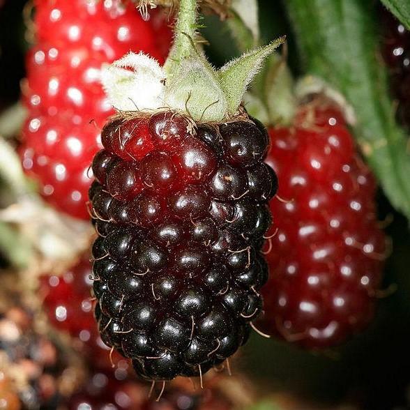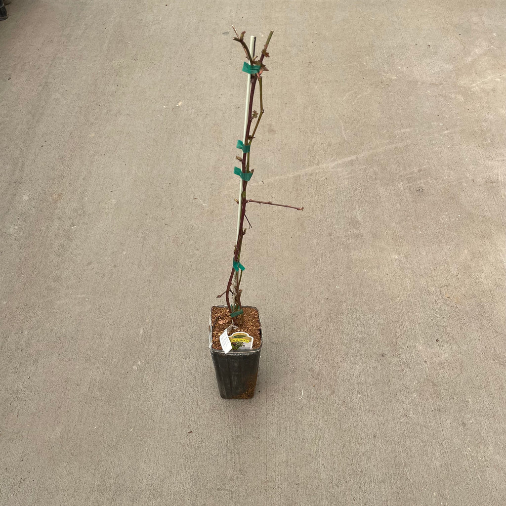 Boysenberries are a hybrid of blackberry, raspberry, dewberry and loganberry. It produces very large berries up to 2.5", dark maroon in color with an intense, tangy, sweet flavor. Excellent quality with few seeds and a pleasant aroma. Vine-like trailing growth habit. Self-fruitful.