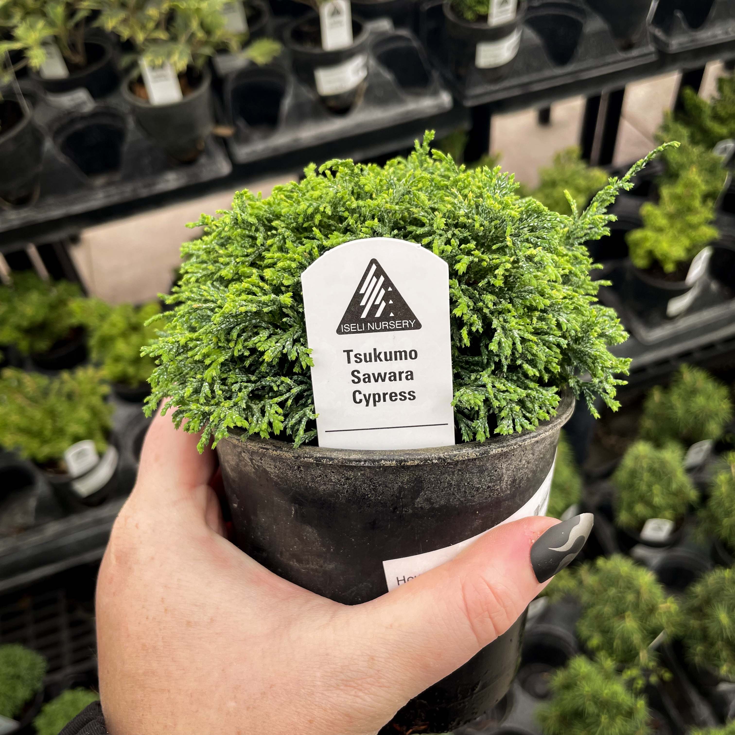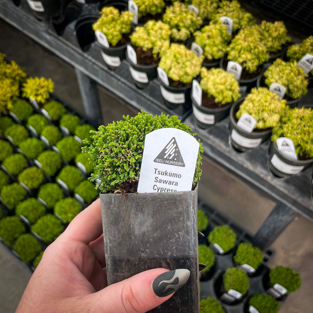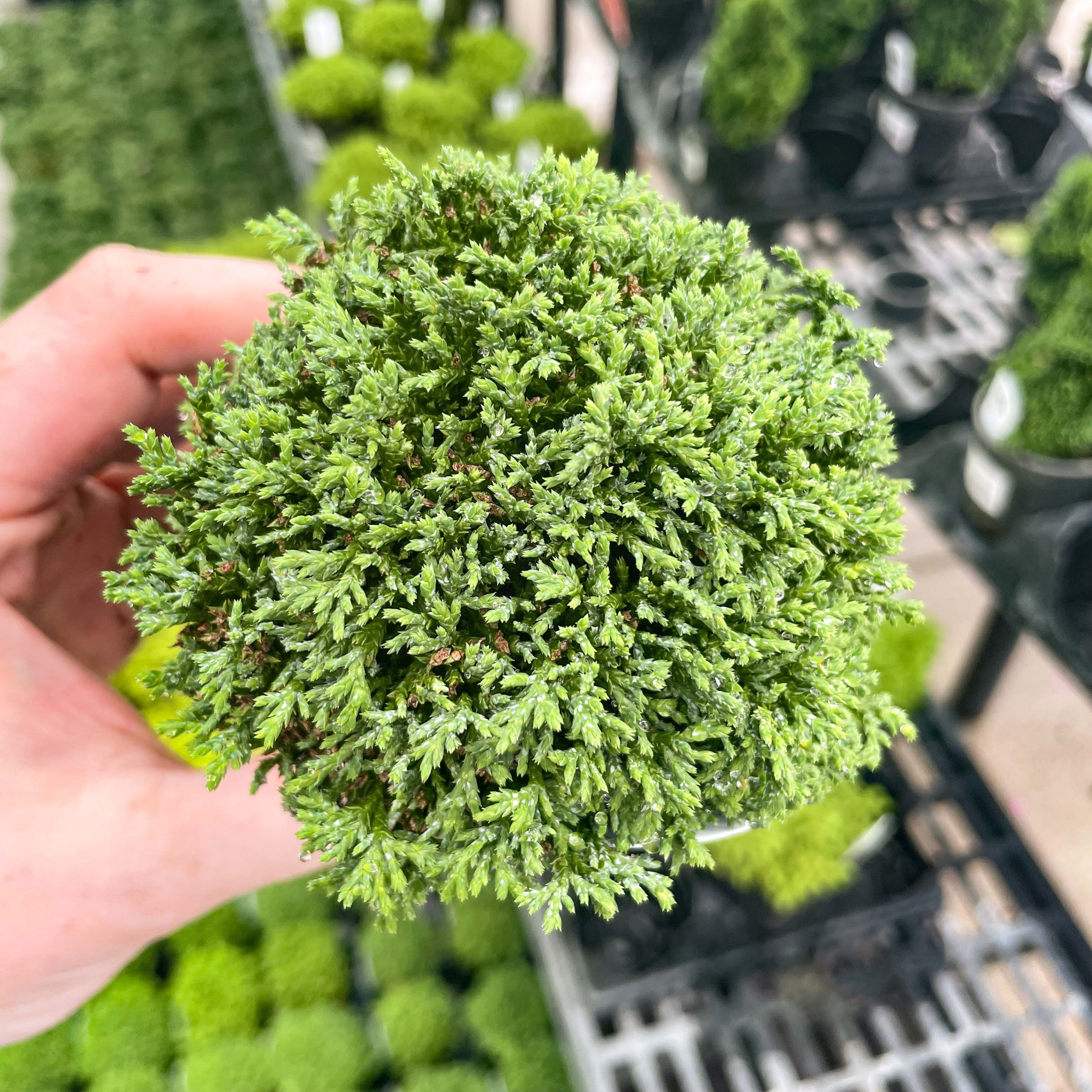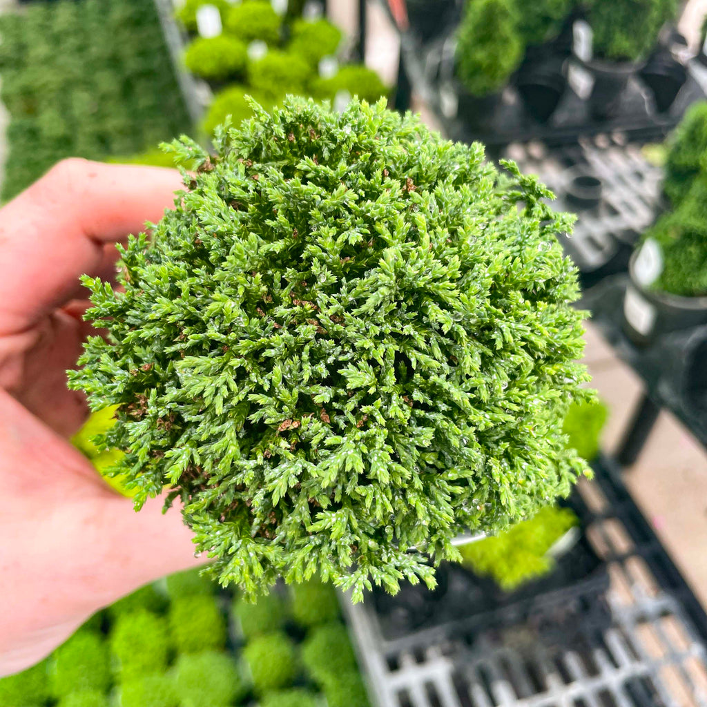 Chamaecyparis pisifera ‘Tsukumo’ is a diminutive conifer that forms a rounded bun reminiscent of a mossy green rock. Its dense, finely textured green foliage grows at an extremely slow pace, making it ideal for miniature or rock gardens where space is at a premium. This hardy, tough selection typically spreads wider than it is tall, creating a neat, cushion-like shape that remains manageable over time.