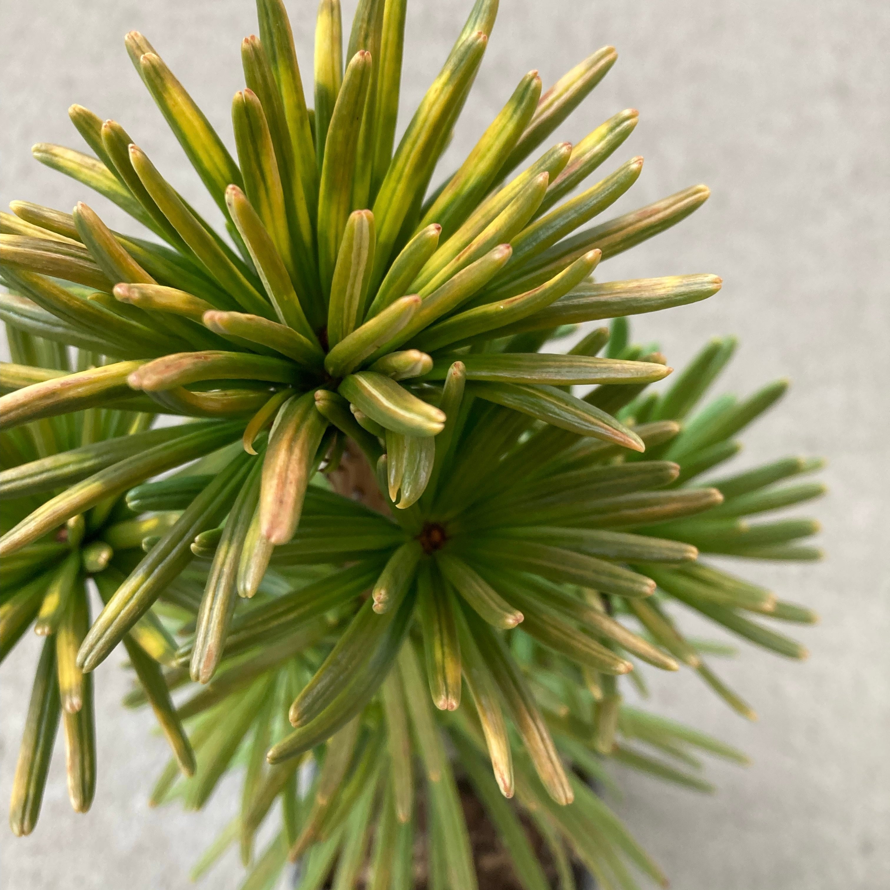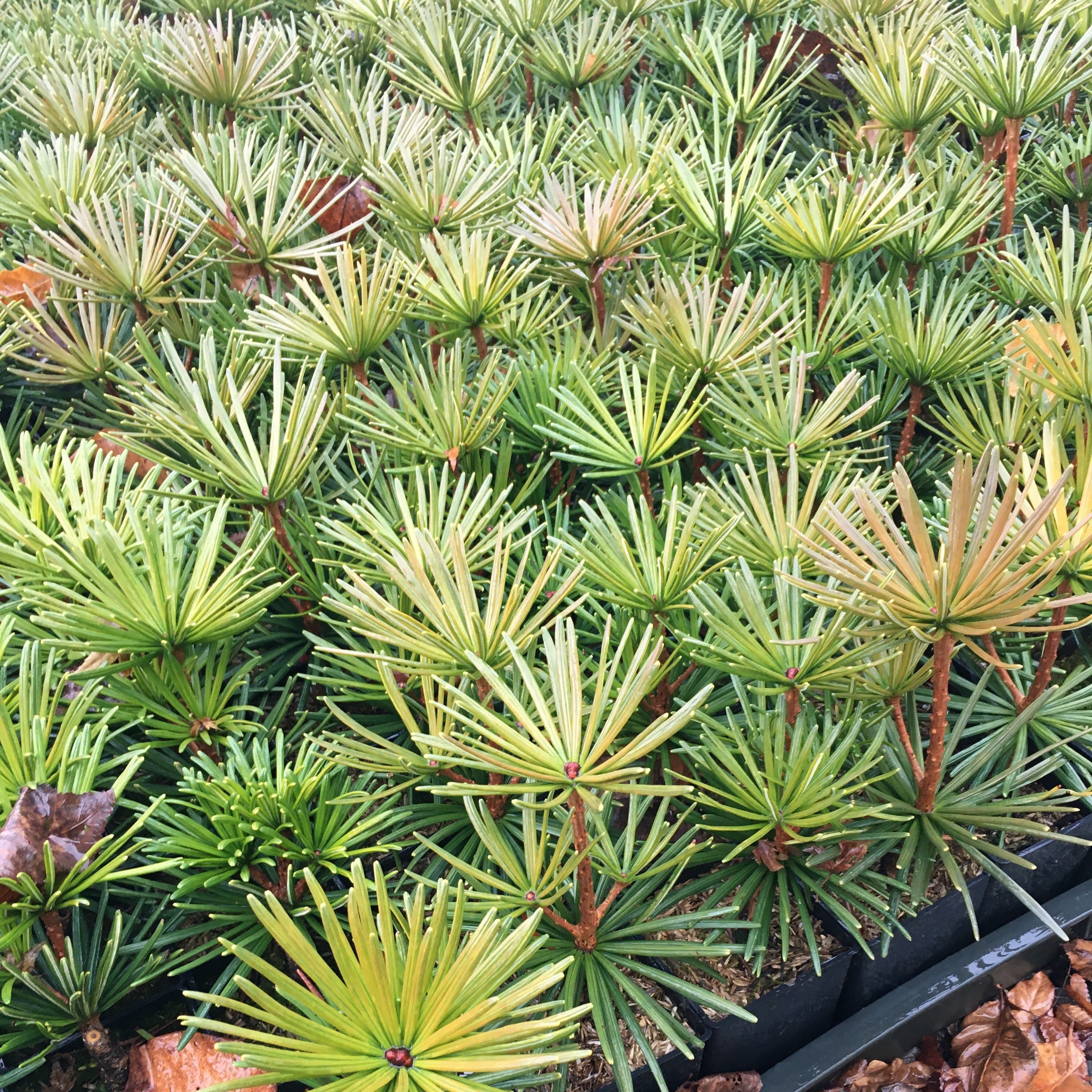 Glossy, dark green needles are thick and flat, having similarity to those of 'Green Star'. The needles radiate out from short study branches in whorls forming little umbrellas, characteristic of Japanese Umbrella Pine. A dense compact form provides an excellent selection for areas with heavier snow loads.