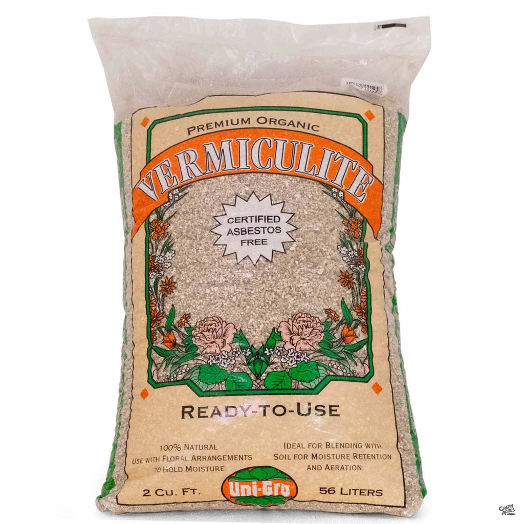 Uni-Gro Vermiculite is a soil additive that uses its accordion-like particles to amend soil by retaining water, improving aeration and prolonging nutrient release. Its ability to retain both air and water makes vermiculite ideal for conditioning container soils. Vermiculite can also be used for seed germination, bulb storage and flower arranging.