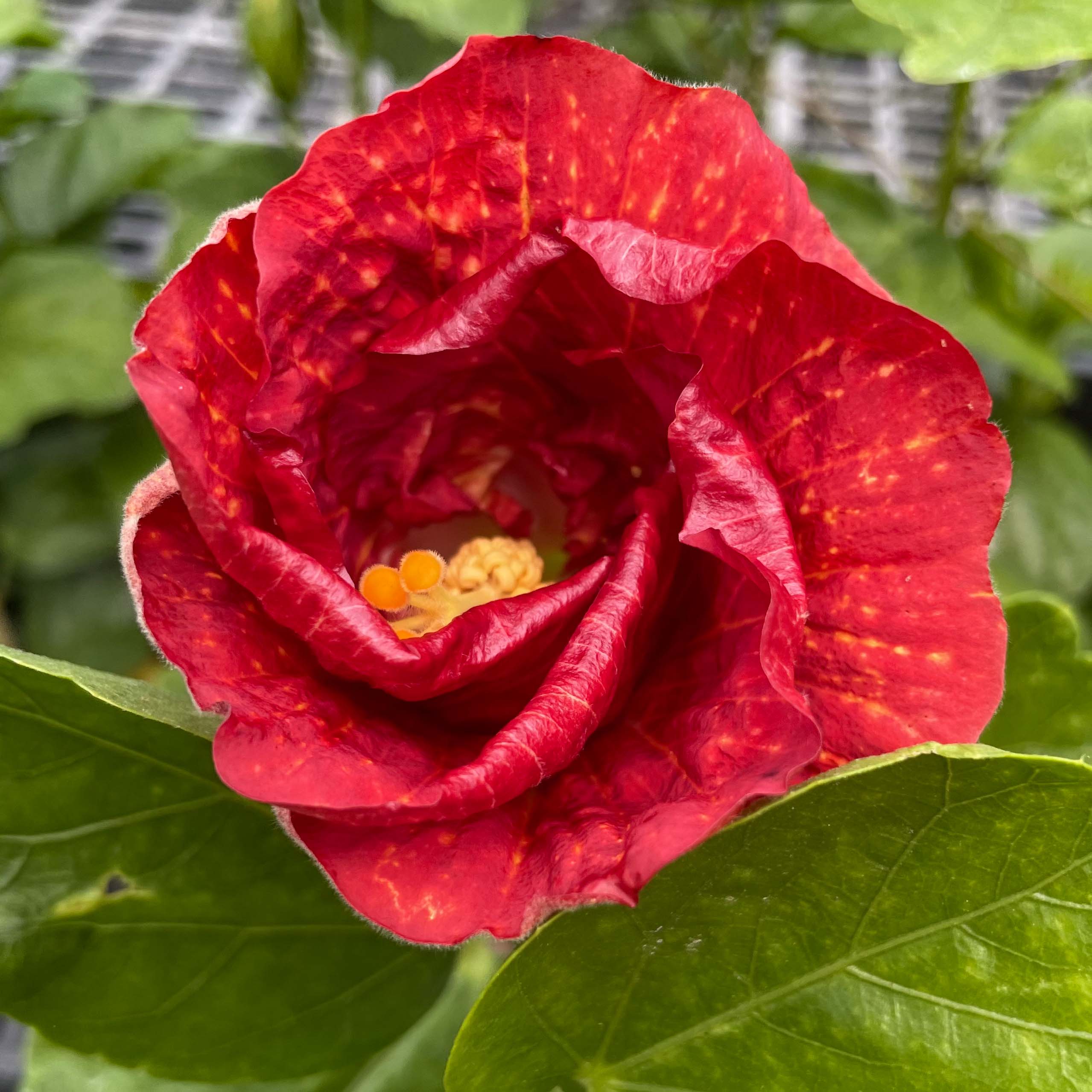 ‘White Hot’ is a mesmerizing hibiscus variety whose blooms transform with the seasons. In spring and fall’s cooler temperatures, its petals are predominantly red with bright yellow accents. As summer heats up, the flowers shift to vibrant yellow touched with orangey-red splashes, all centered by a striking white heart.