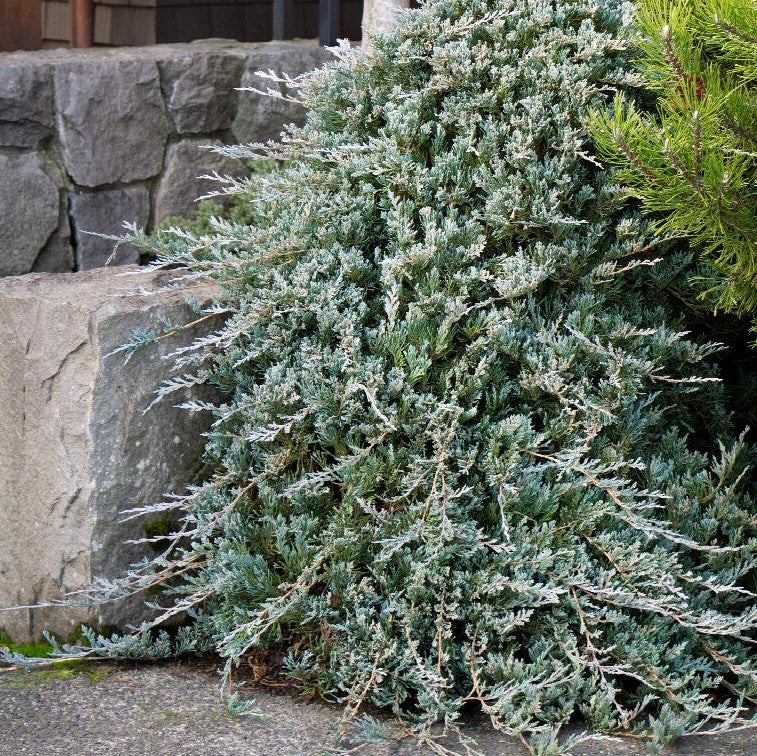 One of the finest trailing junipers having a uniform, full centered growth habit with intense silver-blue evergreen foliage. Excellent for large scale groundcovers or cascading over walls.