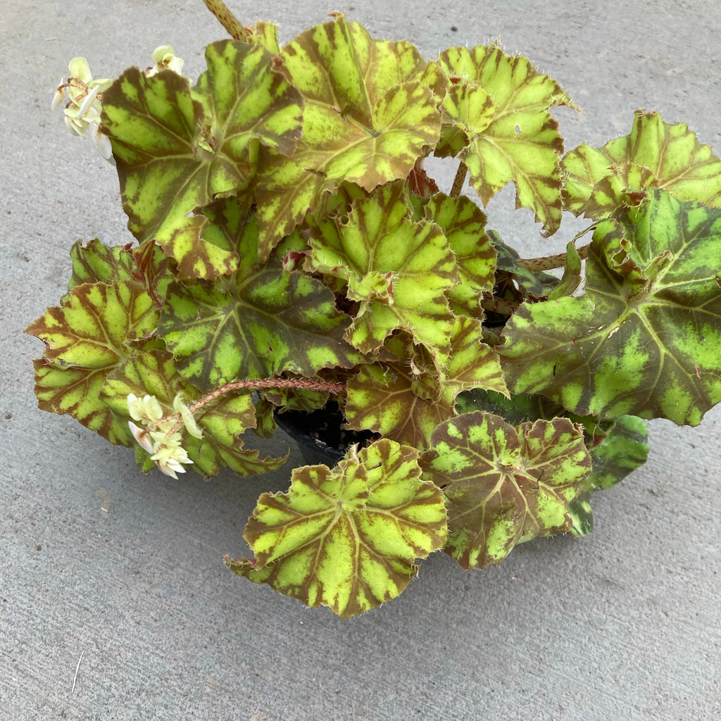 Zumba Begonia, is a beautifully unique plant with large, green leaves with dark venation patterns. These work exceptionally well in shady container plantings or low light areas of the home.